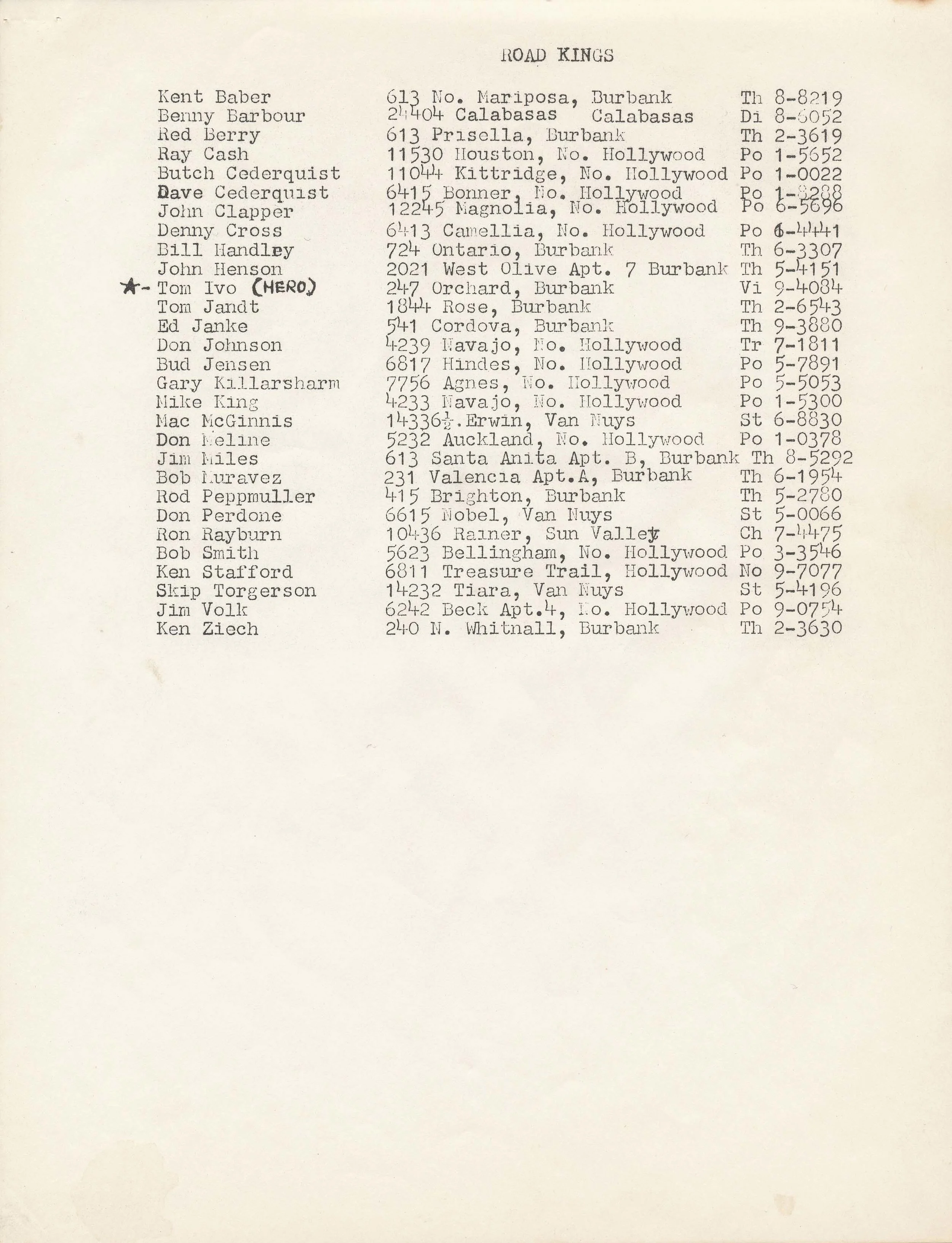 The Road Kings of Burbank have a long history of racing. From the nationally famous drag racers like Don Prudhomme, Tommy Ivo and Ken Safford, to the local racers. They have raced almost every kind of vehicle, on every kind of surface throughout the country, whether it be asphalt, salt or water, in a straight line or on the circle tracks. The classes and vehicles these Road Kings drove in represent a cross section of racing in all of its’ diverse forms.